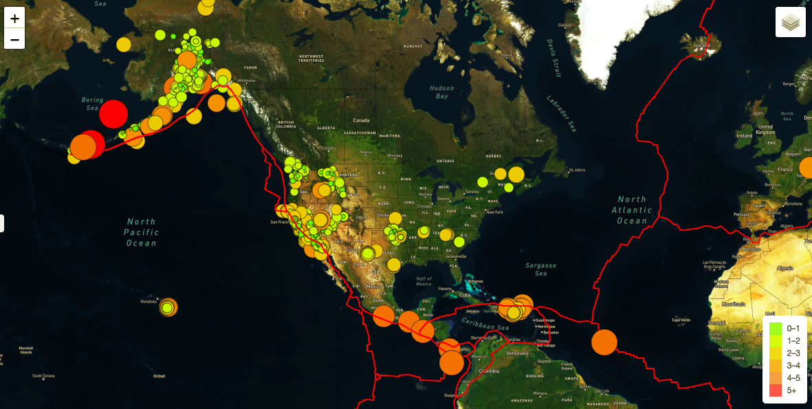 This project uses JavaScript, a Mapbox API call, and Leaflet library to create interactive maps that display data from USGS to map the earthquakes that occured over the course of the past week. The maps have dfferent styles that users can select from and also show the tectonic plates.